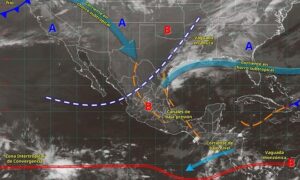 Los canales de baja presión ubicados sobre el oriente y sureste de México, en combinación con una...