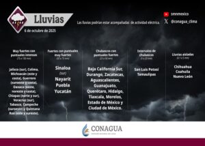 El Servicio Meteorológico Nacional (SMN) prevé lluvias fuertes a muy fuertes en 14 estados ubicados en las...