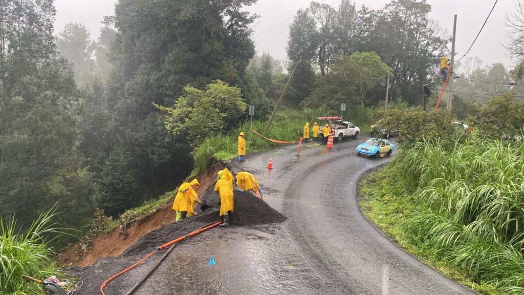 En Puebla, se registraron 20 interrupciones en 71 kilómetros de vías, donde laboran 31 máquinas y 41 trabajadores. Las carreteras más afectadas fueron Pachuca–Tuxpan y Teziutlán–Nautla; esta última sufrió un deslave importante, que fue liberado el viernes por la noche. Aunque el kilómetro 62 presenta un carril confinado por desprendimientos, se mantiene el tránsito por la México–Tuxpan tras el retiro de 75 mil metros cúbicos de material.