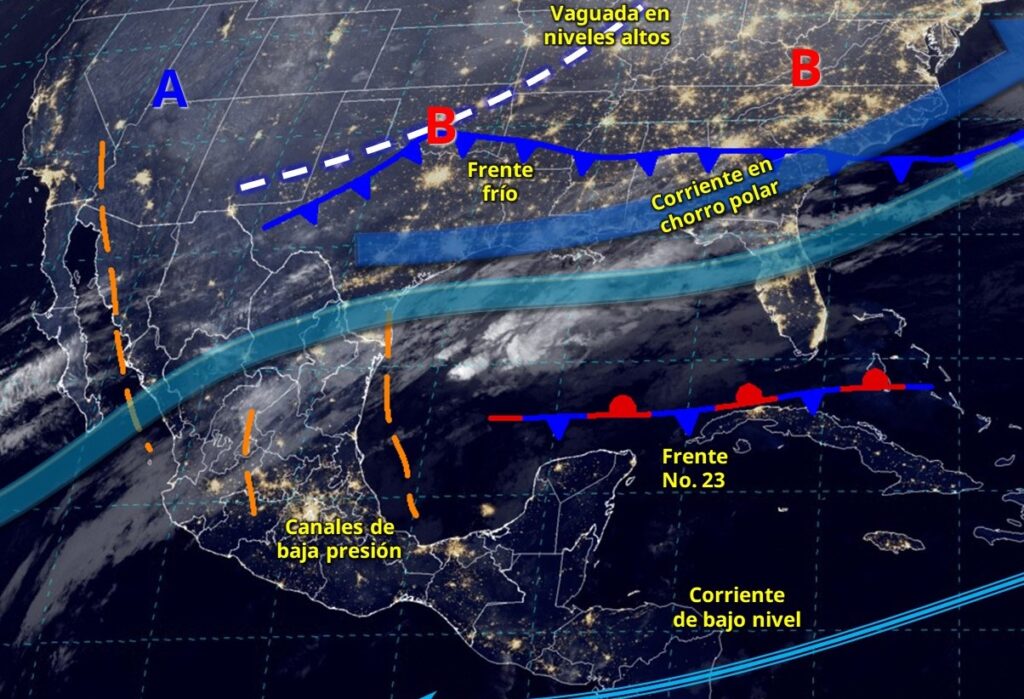 Además, la entrada de humedad desde el océano Pacífico, impulsada por la corriente en chorro subtropical, generará lluvias y chubascos en el occidente, norte y centro del territorio nacional.