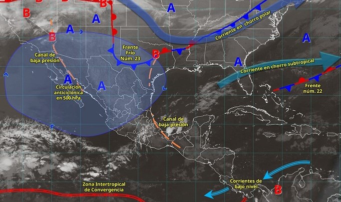 El Servicio Meteorológico Nacional (SMN) alertó sobre la presencia de lluvias de consideración en al menos 11 entidades del país, como resultado de la interacción de canales de baja presión, un anticiclón y la cercanía de un nuevo frente frío.
