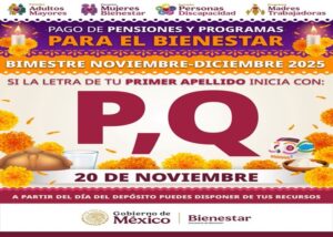 Este martes 18 de noviembre sigue la dispersión de las Pensiones del Bienestar para beneficiarios cuyo primer...
