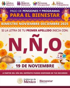 Este miércoles 19 de noviembre continúa la dispersión de recursos de la Pensión y Programas de Bienestar,...