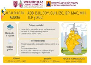 Autoridades de la Secretaría de Gestión Integral de Riesgos y Protección Civil activaron la Alerta Amarilla ante...