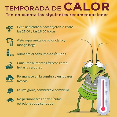 Por ello, se recomienda a la ciudadanía vestir con colores claros, aumentar el consumo de agua, utilizar gorra, sombrero o sombrilla y usar bloqueador solar.