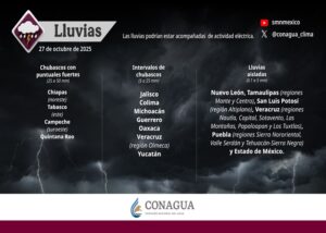 El Servicio Meteorológico Nacional (SMN) anticipa la presencia de chubascos con lluvias fuertes en cuatro entidades del...
