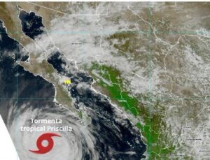 El ciclón Priscilla sigue perdiendo intensidad mientras avanza por el Océano Pacífico, de forma paralela a las...