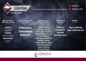 Se prevén lluvias intensas en los estados de Jalisco, Colima y Michoacán, debido al desplazamiento de la...