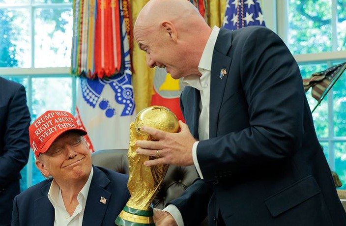 Durante el acto, Trump sostuvo el Trofeo de la Copa Mundial, lo que Infantino calificó como un privilegio exclusivo de ganadores y jefes de Estado. “¿Puedo quedármelo?”, bromeó el presidente, mientras el Despacho Oval lucía adornos dorados tras su regreso al poder en enero.
