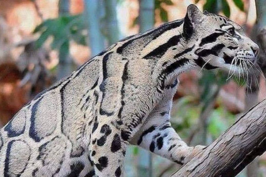 Conocido también como pantera nebulosa o leopardo longibando (Neofelis nebulosa), este felino de hábitos nocturnos destaca por su habilidad para moverse entre los árboles gracias a su larga cola, que le proporciona equilibrio.