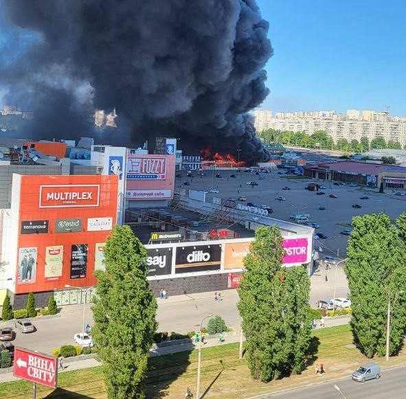 En videos publicados por testigos en redes sociales ucranianas se puede ver una gran columna de humo negro saliendo de la tienda Epitsentr, ubicada en una zona de grandes almacenes junto a un estacionamiento. Según las autoridades, las llamas consumieron entre 10,000 y 15,000 metros cuadrados.
