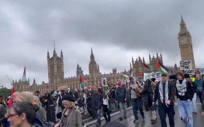 De acuerdo con un video de Reuters, algunos participantes portaban pañuelos palestinos en blanco y negro, coreaban frases como “vergüenza” y “salgan de Gaza”, y mostraban pancartas con mensajes como “Me opongo al genocidio. Apoyo a Acción Palestina”.