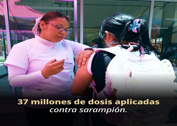 La Secretaría de Salud dio a conocer que, entre enero de 2025 y el 24 de abril de 2026, las instituciones del Sector Salud han administrado más de 37 millones de dosis de vacuna contra el sarampión, como parte de la Estrategia Nacional orientada a proteger a la población.
