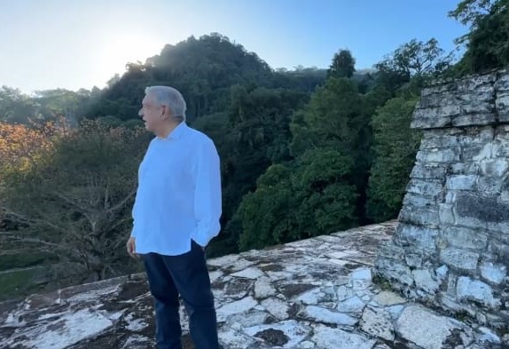 El mandatario, ataviado con una guayabera blanca, difundió sus esperanzas desde las antiguas ruinas mayas de Palenque, Chiapas.