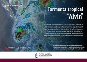 Durante este día, la tormenta tropical «Alvin» se desplazará frente a las costas de Colima y Jalisco,...