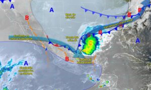 El frente frío no. 42 se desplazará sobre el litoral de Tamaulipas y Veracruz, en interacción con...