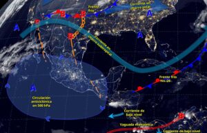 Una circulación anticiclónica en niveles medios de la atmósfera y el bajo contenido de vapor de agua,...