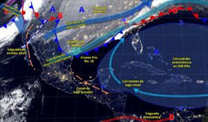 El frente frío No. 26 se extenderá desde el noreste del golfo de México hasta el oriente...