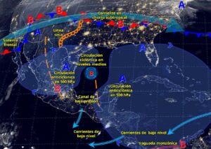 Un canal de baja presión sobre el sureste mexicano, aunado al ingreso de humedad del golfo de...