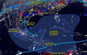 Un frente frío se aproximará a la frontera norte y noreste de México; interaccionará con una línea...