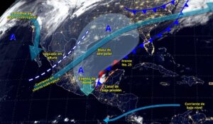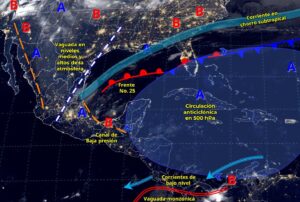 El frente No. 25 se extenderá como estacionario al norte de la península de Yucatán, continuará interactuando...