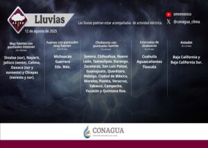 El Servicio Meteorológico Nacional (SMN) pronostica para este martes 12 de agosto de 2025 chubascos y lluvias...