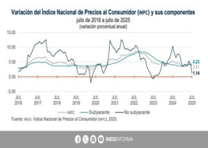 La inflación en México mantuvo su tendencia descendente durante julio de 2025, acumulando dos meses consecutivos a...