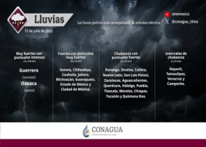 El monzón mexicano continúa influyendo en el noroeste del país, generando lluvias muy fuertes con actividad eléctrica...