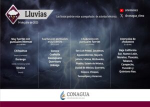 El monzón mexicano seguirá afectando al noroeste del país, provocando lluvias intensas con tormentas eléctricas en entidades...