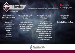 El monzón mexicano continuará afectando el noroeste del país, generando lluvias fuertes en Baja California Sur, Sonora...