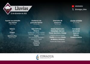 El Servicio Meteorológico Nacional (SMN) pronosticó precipitaciones fuertes en nueve entidades del país, además de intervalos de...