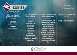 Este lunes, el monzón mexicano favorecerá lluvias muy fuertes en los estados de Sonora, Chihuahua, Durango, Sinaloa...