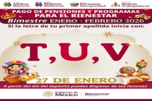 Continúan los pagos del primer bimestre de las pensiones de Bienestar; hoy toca a las letras T, U, V