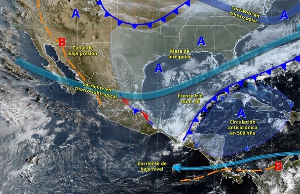 Además, se prevé un incremento en las temperaturas en zonas del norte, noreste, centro, oriente y sureste del país. También se registrará viento del norte con rachas de 70 a 90 km/h en el istmo y el golfo de Tehuantepec, aunque estas condiciones disminuirán durante la tarde.