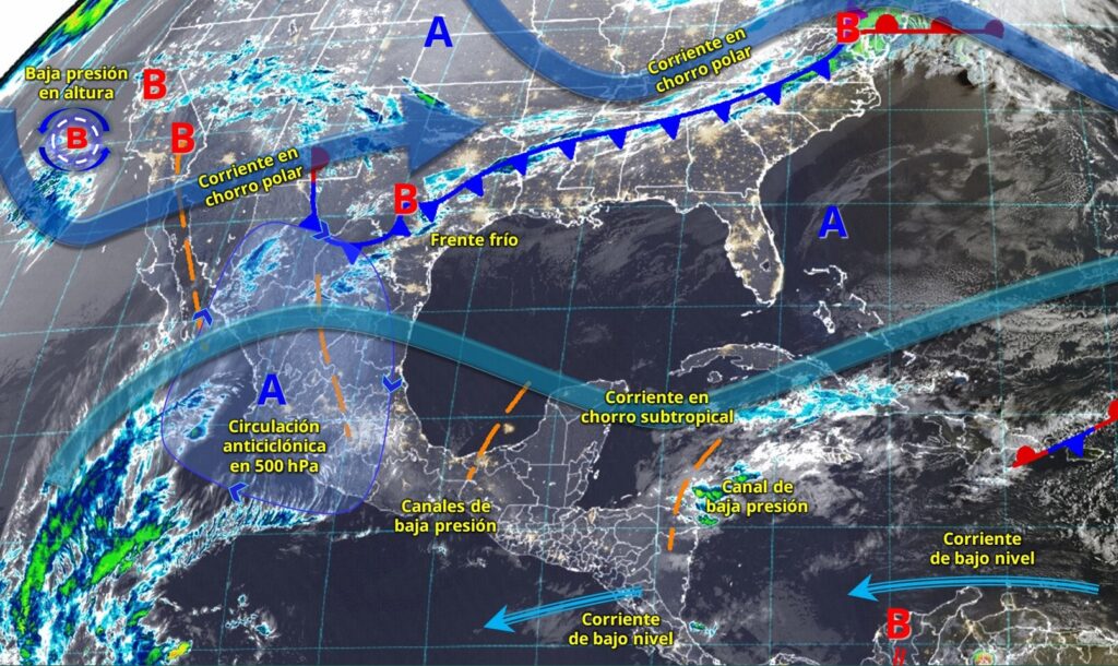 Además, un canal de baja presión sobre el sureste del país, junto con la entrada de humedad proveniente del océano Pacífico, el golfo de México y el mar Caribe, favorecerá la presencia de chubascos en regiones de Veracruz, Oaxaca, Chiapas, Campeche y Quintana Roo. También podrían presentarse lluvias ligeras en algunas áreas de Tamaulipas, San Luis Potosí, Hidalgo, Puebla, Tabasco y Yucatán.