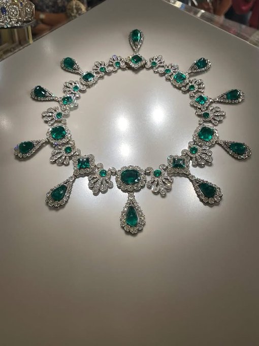 -El conjunto de esmeraldas de María Luisa, con 38 esmeraldas y más de mil diamantes montados en oro y plata.
