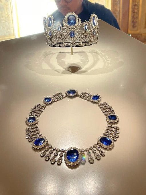 -El collar de zafiros de las reinas María Amelia y Hortensia, con 631 diamantes y ocho zafiros.