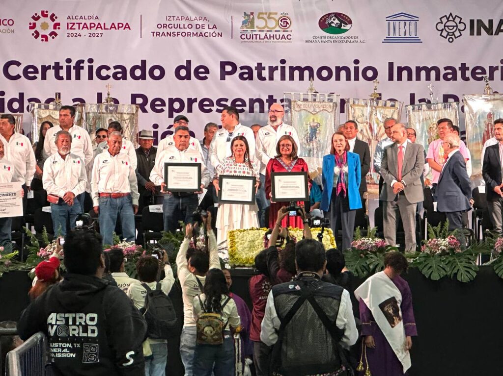La alcaldesa de Iztapalapa, Aleida Alavez Ruiz, recibió el certificado oficial de la UNESCO que declara a la Representación de la Pasión, Muerte y Resurrección de Cristo como Patrimonio Cultural Inmaterial de la Humanidad, un hecho trascendental para la Ciudad de México.